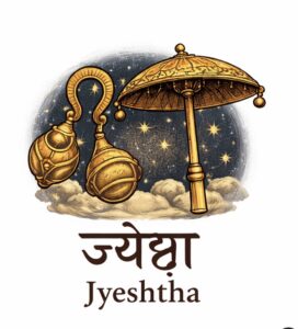 Astronomically, Jyeshtha corresponds to the bright star Antares (Alpha Scorpii), historically associated with intensity, power, and prominence across multiple astrological traditions.